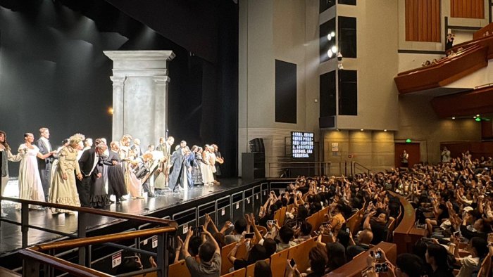 На этот раз, как и всегда, встрече с «Евгением Онегиным» тоже предшествовал вечер общения с фан-клубом спектакля. Вахтанговцы хорошо знают об этом необычном сообществе, которое сложилось в Китае после первого показа «Онегина» на фестивале 2018 года. Спектакль Туминаса буквально всколыхнул тогда театральный мир Китая, превратив гениальное творение Пушкина в одно из самых читаемых теперь здесь произведений русской классики. А вокруг спектакля и вахтанговцев объединилось неформальное сообщество китайских театралов, не пропускающих ни одной встречи не только в театральном зале, но и в любом другом формате.