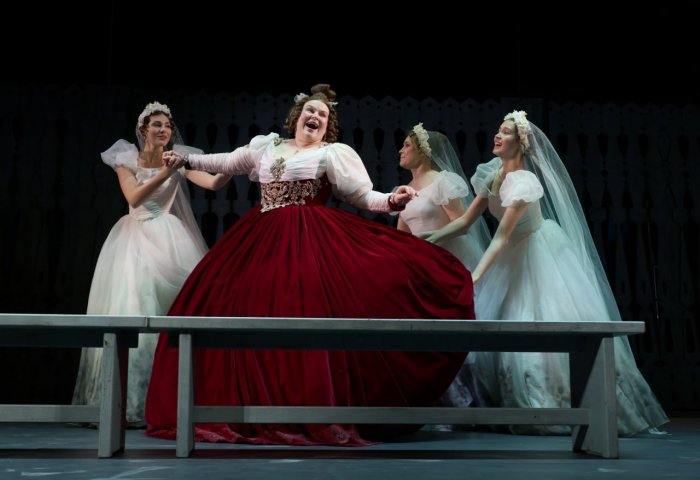 Ослепительная Марина Неёлова, едва узнаваемая в образе свахи Красавиной, очень органична и невероятно смешна. А вместе с властной и эмоциональной героиней Натальи Качаловой так хочется в один голос сказать ставшее классикой: «Я добрая!»Во время сна Бальзаминова по сцене летают – то падая, то поднимаясь откуда-то из глубин бальзаминовской фантазии – белоснежные цветы на лианах. Их необычайную легкость поддерживают парящие, словно облака, платья хореографической группы невест, о которых грезит Михайло Дмитрич. Неповторимый характер каждой подчеркивают пышные, скрывающиеся под прозрачной тканью, подолы (художник по костюмам Мария Боровская). Так и складывается атмосфера желаемой Бальзаминовым свободы – фантазии, где возможно все. «В сумерках отчего ж и не заняться иногда, не помечтать-с?», – говорит Михайло Дмитрич.