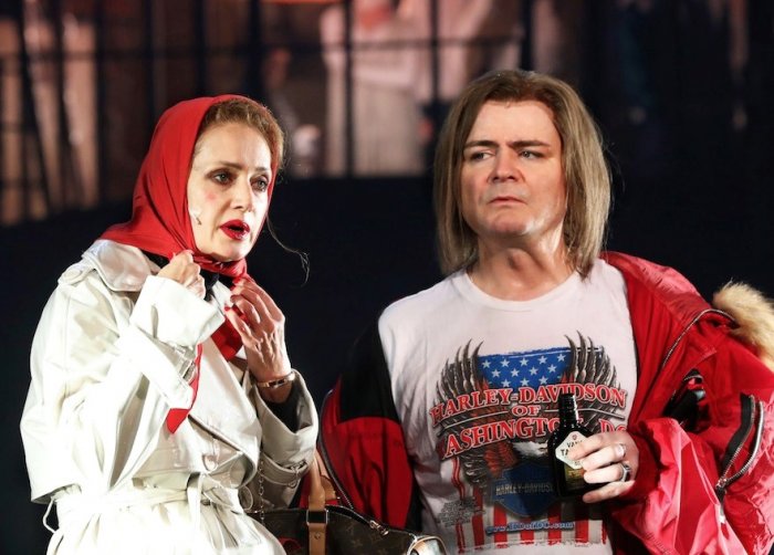 Еще одна тема «Костика» – процесс культурной деградации, масштабов которой Чехов, наверно, и представить не мог. Театр и литература тут уступили место эстраде, которой ох как далеко до Ива Монтана и Шарля Азнавура («Опавшие листья» и «Вечная любовь» в спектакле звучат как песни «великанов, которых мы потеряли»). Поп-певица Аркадина и поэт-песенник Тригорин – из тех, кто раньше забивал теле- и радиоэфир в «народных» программах, а сейчас цепляется за остатки популярности. Это чертовски утомляет, особенно «примадонну» – ей в 45 надо и партнера зубами держать – не только звездный статус. Их рыночные шмотки, место которых – на дачном складе списанных вещей, под стать их хитам, которые давно оскомину набили и крутятся только на радио «Дача». Как ни пытается Тригорин перейти на рэп, поймать новые ритмы, новые интонации – и Александр Матросов отыгрывает это как пародию – нет, подвластна ему только ресторанная лирика. Эти песни уже не знакомы тем, кто слушает Моргенштерна, но еще понятны сверстницам Нины Заречной – провинциалкам, которые, можно сказать, на них выросли, записали в свой «культурный код».