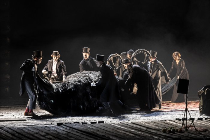 В предлагаемые обстоятельства он входит, как нож в масло, но не до конца понимает, в каком аномальном месте оказался, по каким антигуманным правилам здесь играют – «до гибели всерьез»: и в проруби могут утопить, если не смог взятку дать, как надо, и деточек не пожалеют. Выяснится это позже – когда устранят робкого Добчинского-Бобчинского (Ярослав Медведев играет 50 оттенков страха маленького человека, который ждет, что его вот-вот раздавят, и сбивается то на молитву всем святым, то на отчаянный крик «сдохни, тварь»). Грозовые тучи начнут сгущаться, и Хлестаков поймет, что ещё чуть-чуть и попадёт в хоррор – надо бежать. Безопасность в кругу Городничего – только видимость, и схлопнуться может в любую секунду. Рухнуть внезапно, как громада-рояль, по которому чиновники постукивали своими птичьими носами, не зная, как подступиться.