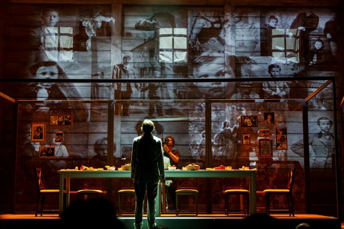 Постановочная группа выстроила мизансцены так, чтобы публика рассматривала... проекции фотографий над головами героев. Рецензенты называют этот спектакль «фотоальбомом» и замечают, что для героев общая память, которую символизируют фотографии, становится единственным способом примирения.