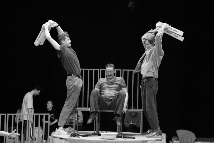 – Мы начали писать инсценировку сразу после пандемии. И, конечно, было интересно исследовать историю создания романа, запараллелить с основной линией бедного Пушкина, который сидит в Болдино, пишет письма жене, общается с няней, а она рассказывает, что здесь, в Кистенёвке – это как раз пушкинская деревня – есть помещик Троекуров, у которого вышла ссора с соседом. Но потом, когда Анастасия Ермолова – молодой драматург, училась в ВШСИ у Михаила Дурненкова и Павла Руднева – закончила текст, мы устроили читку. Хотели, конечно, чтобы мастер курса послушал. Получили очень много ценных советов и поняли, что просто тонем оттого, что инсценировка перенасыщена и толком не получается развернуть пушкинскую линию. В следующей редакции убрали Пушкина (в спектакле он будет, но это, скорее, «пластический намёк» на Александра Сергеевича), добавили много стихов и нашли интересный, как мне кажется, ход с Дубровским-старшим. Не буду раскрывать всех карт.