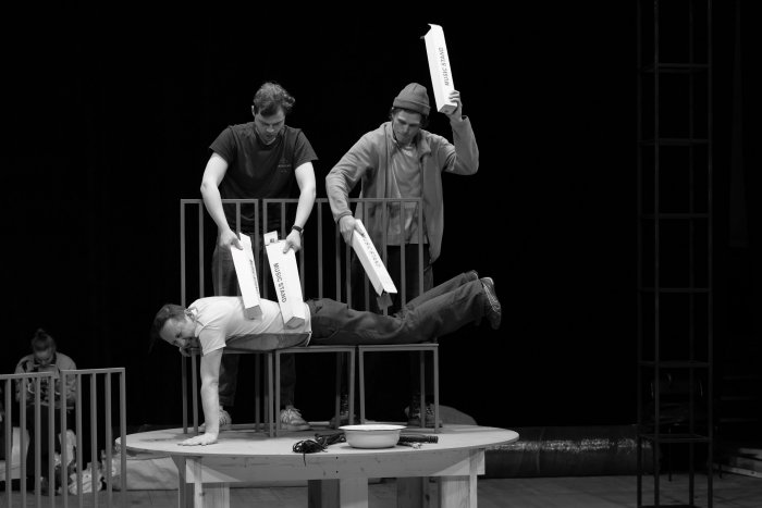 – Я уже не первый раз работаю с хореографом, режиссером по пластике Альбертом Албертсом, с которым мы сейчас изобретаем пластический язык спектакля: он небытовой, он очень образный. В нём нет ничего заумного, ничего вычурного, но при этом есть очень яркое решение. И мне бы хотелось посмотреть, как оно будет эволюционировать. Мы довольно долго запрягали, никуда не спешили. Сейчас спектакль начинает формироваться в геометрической прогрессии. Но пока хочется наслаждаться процессом, не загоняя себя в результативные рамки.