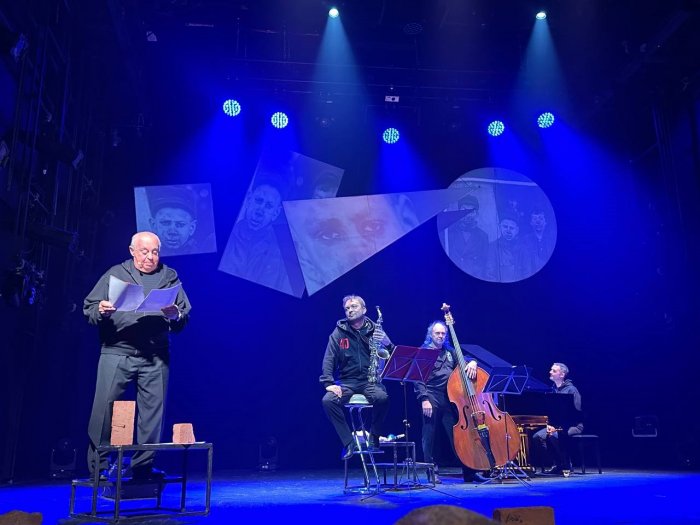 «А вы ноктюрн сыграть могли бы на флейте водосточных труб?» — спрашивает Марк Розовский музыкантов джазового бэнда. «Без проблем», — отвечает саксофонист и начинает наигрывать быструю и яркую мелодию. С таким настроем проходит творческий вечер, посвященный Владимиру Маяковскому.