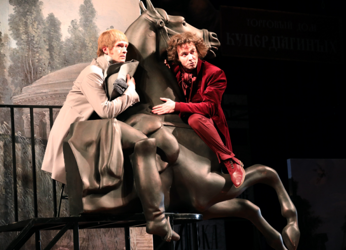«Бешеные деньги»Герои спектакля – представители разорившейся столичной дворянской знати: они еще ездят в экипажах, пьют шампанское, держат слуг, но все это в долг. Но есть и новые люди. «В наше время разбогатеть очень даже возможно» – так считает один из главных героев пьесы, амбициозный предприниматель Васильков. Чужак и провинциал, он влюблен в красавицу Лидию Чебоксарову, как, впрочем, и все окружение. Для Лидии же и ее матери главное – сохранить положение в обществе и «жизнь с приятностями».