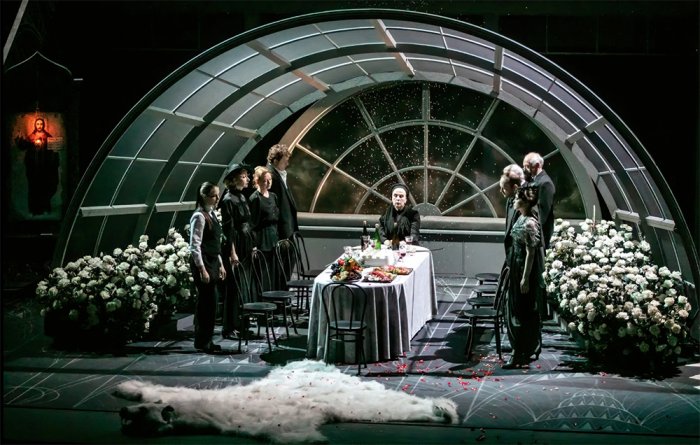 Пик и финал спектакля – хит Басты «Сансара», который, как и легендарную «Аллилуйю любви» из «Юноны и Авось», исполняет вся команда артистов спектакля. Перекличка с рок-оперой многозначна во всех отношениях, как еще один символ того, что для «Ленкома» сегодняшнего – это поиск маяка на новом бескрайнем пути.