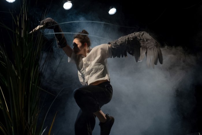 Эта история – о двух противоречивых личностях, которые вроде бы созданы, чтобы быть вместе, но пробиваются друг к другу через искусственные «кордоны». Сказка о журавле и цапле начинается с мистической присказки о слепой Сове. Авторы спектакля решили разобраться, почему сюда попала эта загадочная фольклорная героиня, и отвели ей роль самой Судьбы.