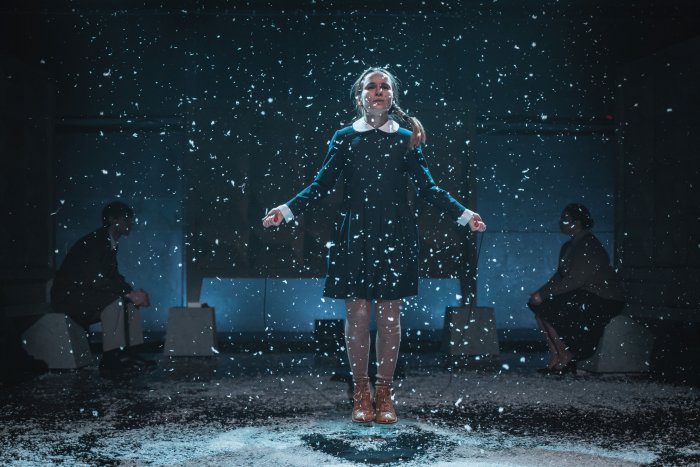 Лучшим спектаклем малой формы жюри признало «Калечину-Малечину» Няганского ТЮЗа в постановке Сойжин Жамбаловой – одной из самых интересных молодых режиссеров, работающих для подростковой аудитории. Повесть Евгении Некрасовой о «невыросшей» девочке Кате, которую травят в школе и не замечают дома, и ее волшебной помощнице Кикиморе, написана в жанре магического реализма. В спектакле свинцовую реальность будней выражает серый бетонный забор во всю сцену, а за магию – опасную хтоническую силу – отвечают фантастические костюмы и музыка Дахалэ Жамбалова. При этом насыщенный, образный текст Некрасовой дополнен личными рассказами актеров о травмах детства, что делает постановку особенно подлинной и пронзительной.