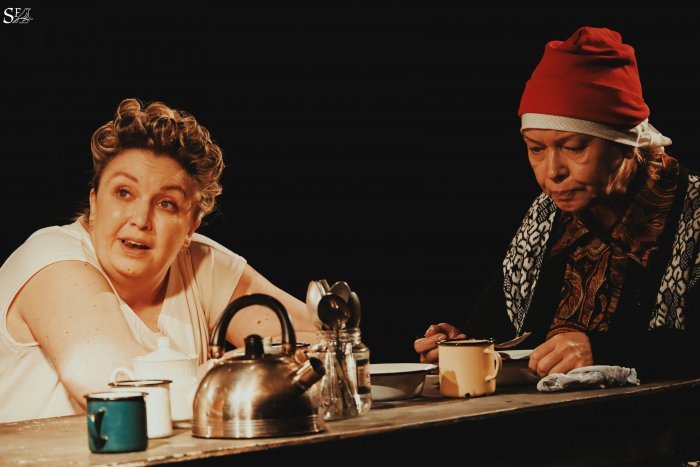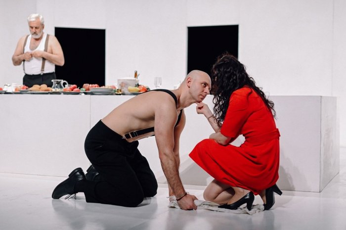 Специальным призом Министерства культуры республики был награжден спектакль «Фрекен Жюли» Прокопьевского драматического театра. Режиссер Дмитрий Акриш тут придумал интересный ход, показав Жана, Кристину и фрекен Жюли в старости. Возрастные герои сидят за красиво накрытым столом и молча наблюдают за своими молодыми двойниками. И за их оценками (состраданием, стыдом, болью, язвительными взглядами) следить не менее интересно, чем за развитием сюжета. И очевидно, что бесконечное, уже в который раз, проживание этой драмы становится для них настоящей пыткой. Так что старшая фрекен Жюли в конце концов решается на то, что не смогла сделать младшая – собирает со стола все таблетки и уходит за сцену.