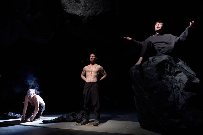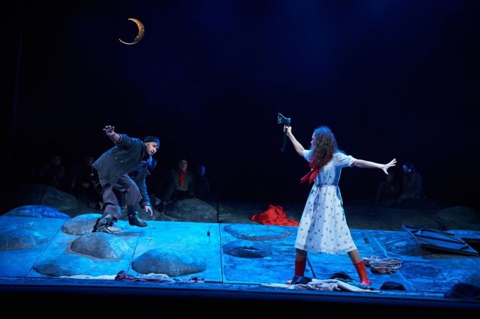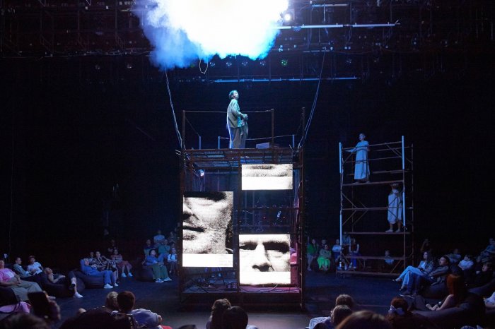 Совсем другой, высокотехнологичный и европейский по стилю спектакль представил Новоуральский театр музыки, драмы и комедии – он получил премию Ассоциации театральных критиков «за музыкальное и визуальное решение и высокую постановочную культуру». Режиссер Петр Незлученко поставил «Старика и море» Хемингуэя как иммерсивное погружение или «саундраму». Зрители тут словно попадают на морское дно – слышат пение сирен и видят мерцание света на глади волн. А историю битвы человека со стихией в инсценировке Светланы Баженовой рассказывает та самая побежденная рыба. Мы видим только фрагменты её/его лица на live-экранах. Но оказывается, что Старик и Рыба – это по сути одно (их играет один актер, Евгений Недокушев). И получается, что борьбу гордый человек вел с самим собой, так что его пиррова победа закономерно обернулась поражением.