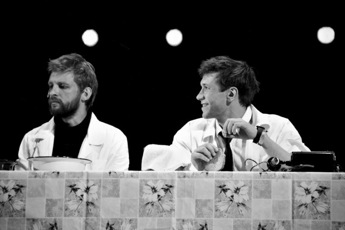 Спектакль по мотивам романа Тургенева «Отцы и дети» поставил режиссер Семен Серзин, который перенес действие романа во времена перестройки.