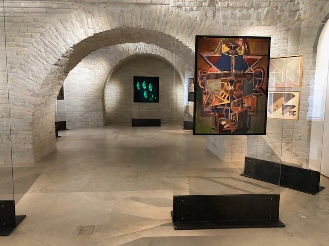 В двух залах располагается первый выставочный проект нашего Центра, который называется «Неочевидные пересечения». Он носит такое название, потому что искусство художников-шестидесятников – золотой фонд коллекции Музея АZ – пересекается в этом проекте с произведениями композиторов-нонконформистов.Каждую среду, в течение всего лета, слушателей ждут концерты, где будут исполнены произведения Галины Уствольсткой, Софии Губайдулиной, Альфреда Шнитке, Андрея Волковинского, Сергея Слонимского и других. К каждому концерту одна часть выставки будет регулярно обновляться, а вторая часть останется неизменной: здесь располагается десять работ художников нонконформистов, которые являются словно основой предстоящих концертов. Так кураторы проекта – гендиректор Музея AZ Наталия Опалева, директор Фонда композитора Николая Каретникова Антон Каретников и музыковед Сергей Терентьев – представляют слияние изобразительного и исполнительского искусства второй половины ХХ века.