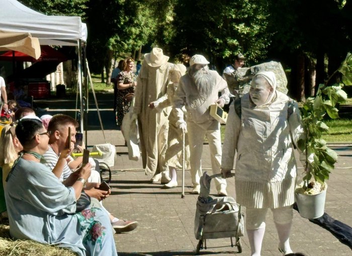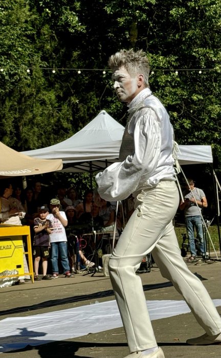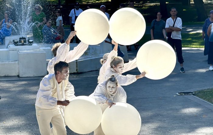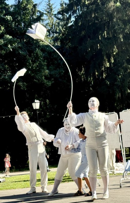Ярким тому подтверждением стала программа уличных представлений, составленная буквально по минутам. Едва в одном уголке центрального городского парка завершалось представление, как в другом через считанные минуты начиналось новое. Минуты действительно были просчитаны организаторами так, чтобы зрители успели переместиться по тенистым аллеям от Летней эстрады к фонтану «Цапля» или далее к Китайской беседке, поделиться по дороге впечатлениями, утолить жажду глотком воды или холодного чая, и уже очередной театр начинал для них очередное представление. Причём вся программа уличных спектаклей была посвящена 225-летию со дня рождения Александра Пушкина, поэтому складывалось невольно ощущение единого действа, которое не прекращается, а лишь меняет форматы, стилистику и ракурс освещения различных граней судьбы поэта.