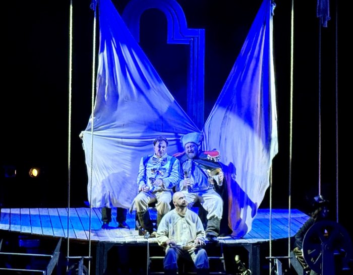 Оценила публика и тонкую иронию спектакля «Левша», который на фестиваль привез Донецкий республиканский молодежный театр. Народный колорит, яркие костюмы в стиле «стимпанк», неожиданные хоралы переходящие в мелодии Битлз, обаятельный философ-скоморох Левша (Вадим Басалыгин) с очень актуальными оценками заморских изделий да наших ружей, надраенных кирпичом – все это не могло оставить равнодушным почти никого из зрителей. И это несмотря на то, что аудитория здесь в зале процентов на девяносто женская. Гордые кавказские мужчины, похоже, еще не оценили модную привлекательность и творческий размах фестиваля, поэтому паркуют свои лимузины по привычке у модных ресторанов, хотя их прекрасные дамы уже вовсю стремятся в театральные залы фестиваля, активно раскупив билеты.