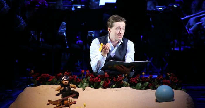 Трогательную историю-притчу о мальчике, который путешествует от планеты к планете и познает мир, со сцены прочитает сам режиссер-постановщик. Он покажет зрителям свой детский мир: на полке стоит портрет 6-летнего мальчика, здесь же плюшевый мишка, деревянный самолет, резиновая змейка и маленькая фигурка самого Принца. Спектакль развернется сразу в нескольких пространствах: пустыня-песочница на авансцене и огромный мир, который помогут создать скрипачи, пианисты, арфисты и другие музыканты.