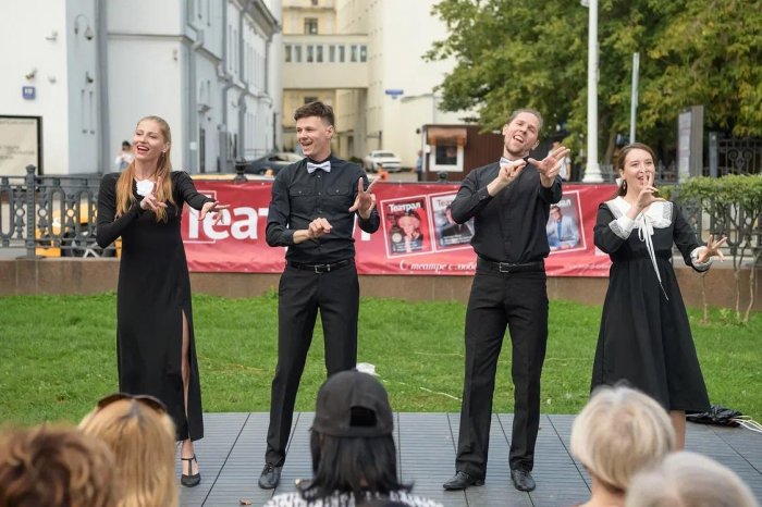 Артисты Театра Мимики и Жеста покорили зрителей музыкально-пластическими номерами, своей энергией. Директор театра Роберт Фомин пообщался с публикой на языке жестов, рассказал об особенностях их выступлений и представил своих уникальных актеров.