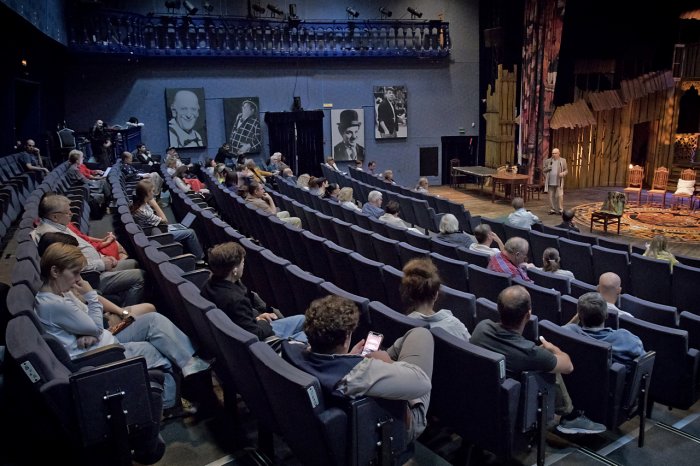 15 августа состоялся сбор труппы театра «Эрмитаж». Основанный в 1959 году, как Московский театр миниатюр, он за эти годы поменял не только название, но и всю концепцию. Его руководитель – народный артист России Михаил Левитин, придя в театр в конце семидесятых годов, полностью изменил вектор движения театра и его коллектива в сторону особой авторской эстетики. И сегодня «Эрмитаж» – это театр со своей индивидуальностью и яркой, подчас эксцентричной манерой существования.