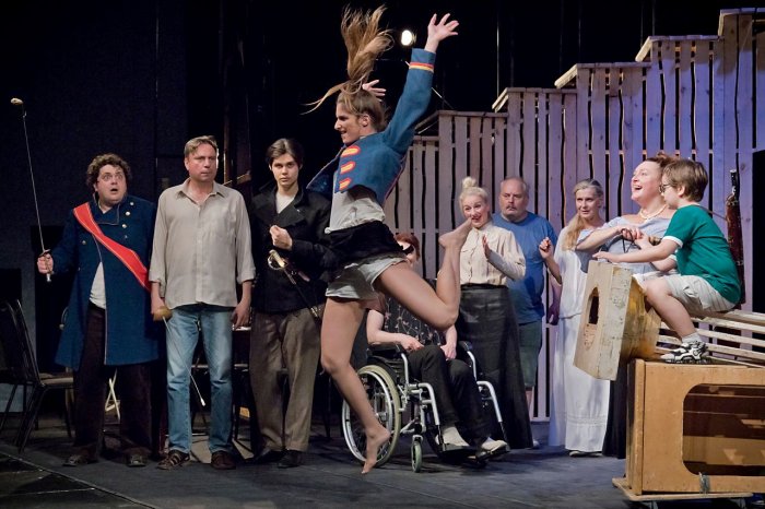 Как говорит режиссер Михаил Левитин, события спектакля увидены глазами ребенка Сережи Витте. Отсюда и неординарность, и парадоксальность происходящего на сцене.