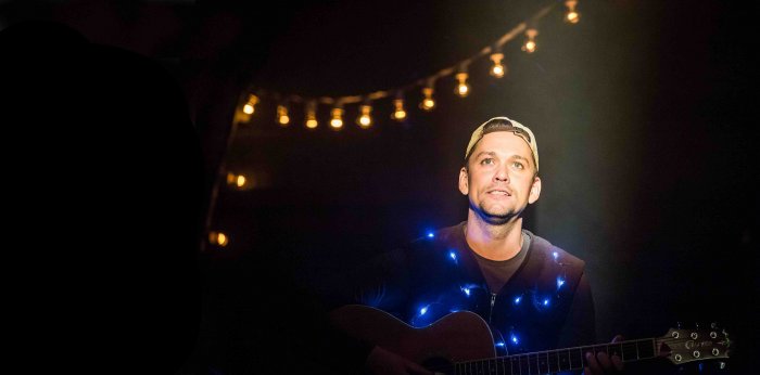 Моноспектакль Антона Соколова вдохновлен творчеством его друзей и создан вместе с ними. Его соавторы – актер и режиссер Степан Куликов, воплотивший эту идею на сцене, драматург Максим Лапин, написавший историю о молодом талантливом парне, которого личная трагедия заставила похоронить себя в глуши, и современный бард Никита Дорофеев, чьи поэтические образы и песни легли в основу спектакля, став исповедями главного героя.