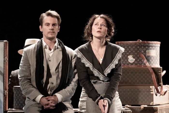 Это место, куда хочется вернуться – и откуда почти сразу хочется уехать и забыть, оно уже перестало быть своим. Раневская здесь дома – и не дома. И, кажется, с первых минут понимает, что не задержится – не разбирает багаж. Ну, а это – бесконечное множество чемоданов, коробок, кофров размером со шкаф (их так и поставят – вертикально). Парижский гардероб заносят в зал с десяток мужиков, топают в проходах, сгружают на сцене, причем в несколько заходов – идут и идут… Луивиттоновской красоты – немерено: на багажный вагон хватит. Эти же рабочие в конце будут выносить всё, с чем Раневская отъезжает в Париж, но уже по-хозяйски – будто забирают навсегда (вот так просто, без предисловий), «вбивают» эту мысль сапогами – и ставят точку, громко хлопнув дверьми. Нет слов!