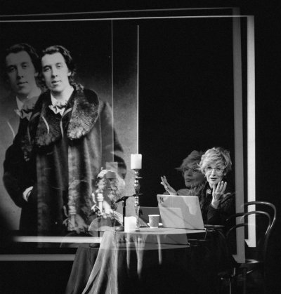 Лекцию «Раздевая Оскара Уайльда. Блуждания театрального художника в поисках автора» сложно назвать лекцией в привычном понимании. Небольшой зал полнится внимательным и погружённым в контекст зрителем. На этой лекции не будет типичного обращения к биографии или, например, содержанию произведений золотой уайльдовской классики. Но здесь точно будут заметки о красивой матери-революционерке и несуразном отце-хирурге, подробный анализ природы уайльдовских (между прочим, женских) красных и зелёных фильдиперсовых чулок, разъяснение их отличия от фильдекосовых, легенды о шубе из зелёных соболей, привезённых из Российской империи, поиски влияния ирландского модника на русских поэтов Серебряного века, и даже шутливые рассказы о постоянных попытках писателя переодеть всех женщин на Земле – начиная с собственной жены и известнейших актрис того времени, заканчивая ничем не примечательными гувернантками. Впрочем, и сама главная героиня вечера не отрицает – это публичный акт «раздевания» Оскара Уайльда, гения, перевернувшего весь мир, и не только литературный. Значит, надо смотреть, а не просто слушать.