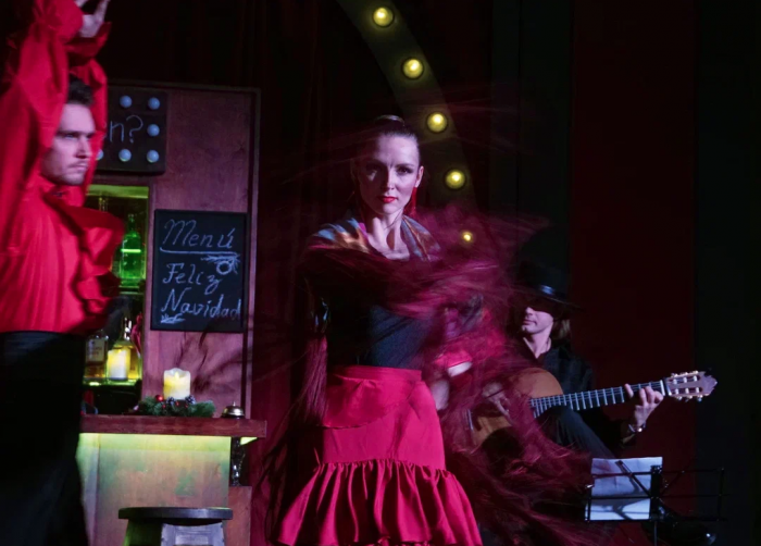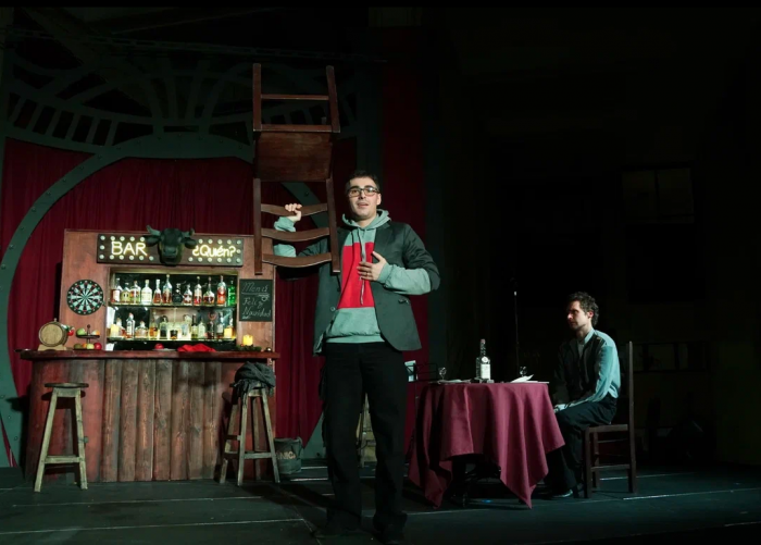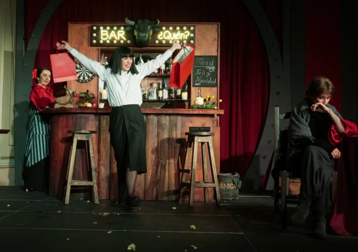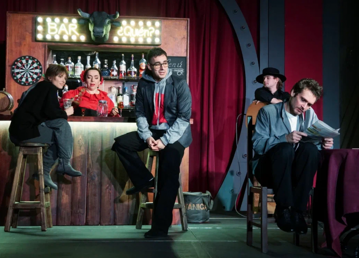 Конечно, антураж Испании заметен не только в выборе песен. В пространстве испанского бара с символичным названием «Quién?» («Кто?» – «Т») хозяйка носит традиционное платье. Барная стойка и пару столов создают, тем не менее, полноценное погружение в реалии мира героев постановки. Решение режиссера Ольги Матвеевой поставить две пьесы в небольшом пространстве только на первый взгляд может показаться нелогичным. Стриндберг писал маленькие истории для своего Интимного театра, где грань между зрителем и сценой намеренно размывалась. Очевидно, что такую же цель преследует и режиссер спектакля «Кто сильнее». Отсутствие преград работает на погружение в мир обычных людей. Другой вопрос, что жанр спектакля – психологический детектив. Его закон обязывает наличие интриги и раскрытие тайны. Постановка «Кто сильнее» справляется и с тем, и другим.