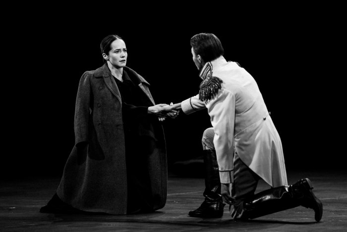 – Но вы действительно трактуете роман довольно неожиданно, у вас нет массовых сцен, нет народа, нет Кутузова и Наполеона... Вы оставили на пустынной сцене лишь семью, безответную любовь, непонимание, одиночество. И отрицание, осуждение бессмысленной войны. В спектакле нет ни одного счастливого человека, многие мечтают о счастье, стремятся к нему, а счастья нет. Только разочарование…