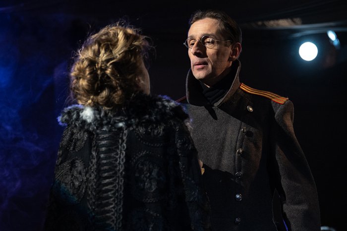 И когда напряжение достигает наивысшей точки, когда крик «Володя» метриализуется в облике незаметно появляющегося и исчезающего Тальберга (Владимир Волжин), когда в доме Турбиных зритель видит юнкеров в обугленных шинелях, – «Казачья колыбельная песня» наводит на размышления о бесконечно повторяющихся уроках истории. «Господа, сегодняшний вечер – великий пролог к новой исторической пьесе»…