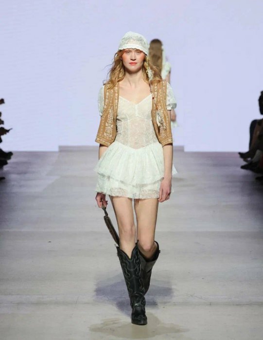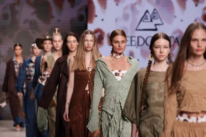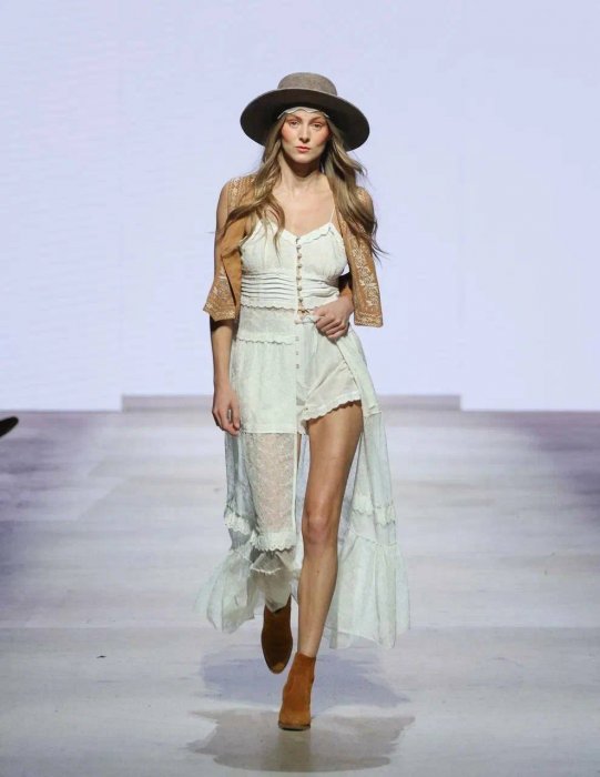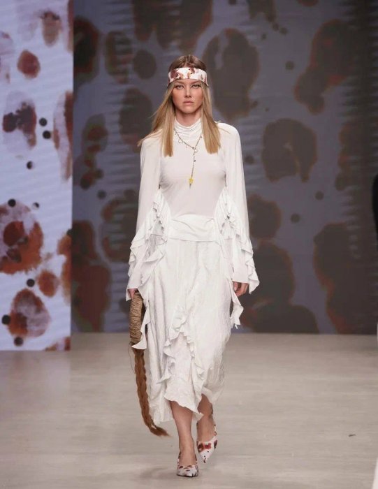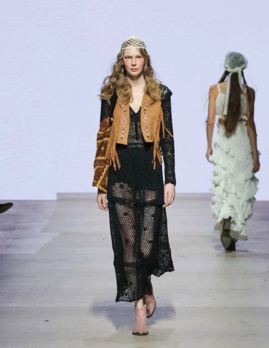 Masterpeace (Москва)Бренд представил весенне-летнюю коллекцию в стиле бохо, вдохновленную 70-ми. Показ отличался инклюзивностью: на подиуме были модели плюс-сайз, возрастные модели, Таисия Левченко – модель с ограниченными возможностями, стилист Гала Борзова с ребенком и солистка Большого театра Анита Пудикова. Для создания вещей использовались ткани и фурнитура из пяти стран. В коллекции представлены жилетки из винтажного бархата и замши, а шляпы и украшения, сделанные Евгенией Линович вручную в Перу, добавляют коллекции экологичности.