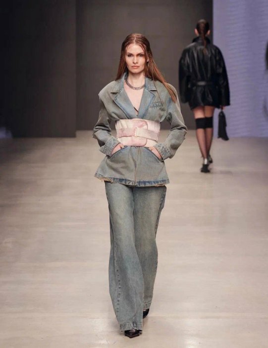 Петербургский апсайкл-бренд Rishi представил коллекцию, полностью посвященную дениму. Джинсовая ткань использовалась для создания самых разных вещей: от плащей и платьев до брюк и сумок. В коллекции выделяются асимметричный крой, корсеты, баски, а также сочетание облегающих и свободных силуэтов.