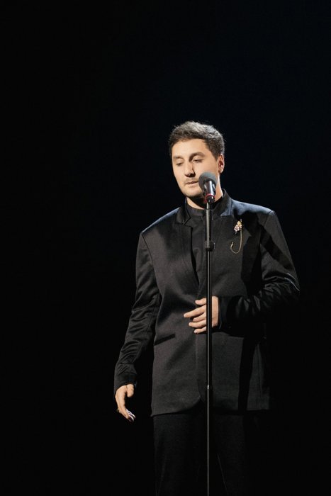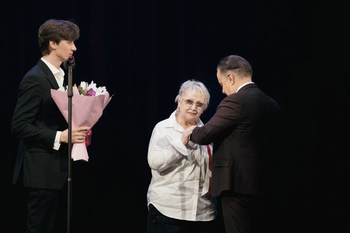 Ведущий вечера – помощник директора по творческим вопросам Дмитрий Трубочкин – вначале церемонии рассказал об этой награде: «Эта премия – достояние и традиция Театра Вахтангова. Получить её могут только сотрудники нашего театра в результате всеобщего тайного голосования. Нам дороги все театральные профессии: от билетера до артиста, от работника гардероба до директора. И особенно дорого то, что тебя награждают твои же коллеги, друзья, товарищи. В этом – самое высшее признание. Сегодня мы отмечаем юбилей! В 2015 году, то есть 10 лет назад, премия «Человек Театра» была учреждена по инициативе Римаса Туминаса. Награда – это брошь из золота и драгоценных камней в форме веточки сирени – любимый цветок Евгения Вахтангова (ее автор – главный художник Максим Обрезков). Идея Римаса заключалась в том, чтобы вручать ее раз в два года, в Международный день театра. Этот праздник отмечают в конце марта, потому что в это время в Древней Греции справляли Большие Дионисии – первый театральный фестиваль. Вспоминать об этом особенно волнительно сегодня, когда сцена всё еще отзывается стихами Софоклова «Эдипа», нашего сегодняшнего спектакля. Примерно в эти дни, но 25 столетий назад, Софокл в Афинах получал приз за своего «Эдипа-царя». И еще одна круглая дата, которую уместно вспомнить именно сегодня. В 1545 году, то есть 480 лет назад, в Италии в начале весны была создана первая профессиональная труппа Комедии дель арте».