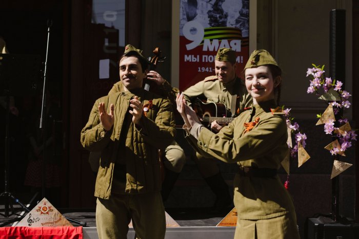 9 мая большой театрализованный концерт под открытым небом «Не проходите мимо» пройдет у Театра Эстрады имени Аркадия Райкина на Большой Конюшенной, 27.