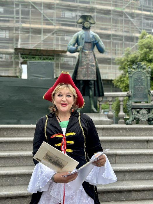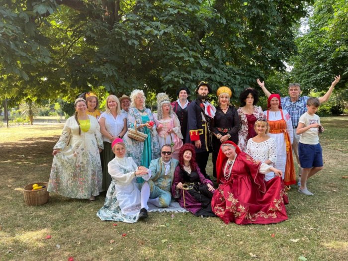 И с этого все началось! Позже я привлекла к этой традиции нашу театральную труппу. Сначала я веду экскурсию о русском посольстве в Англии, которая сопровождается сценами, где наши актеры играют самого Петра, Меншикова, Лефорта. Мы возлагаем цветы памятнику, и идем к дереву, посаженному Петром, где продолжаем театральное выступление, показываем придворные танцы, хороводы, изображая сцены то в Англии, то в России. А потом устраиваем общий пикник, во время которого зрители тоже могут показать свои таланты.