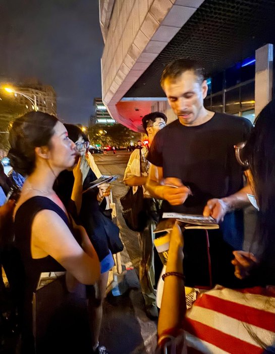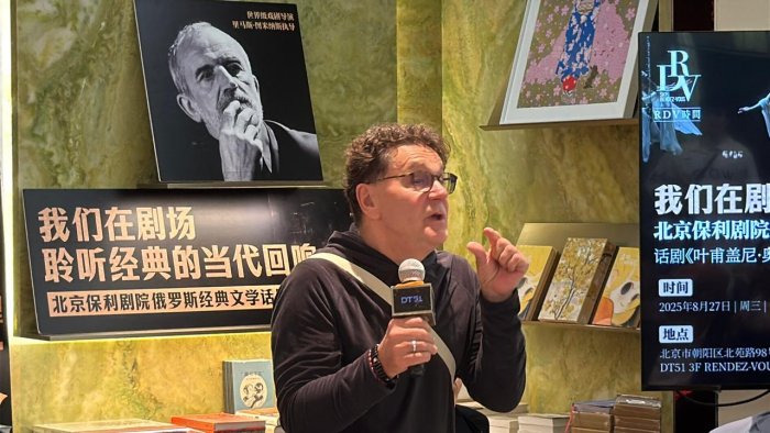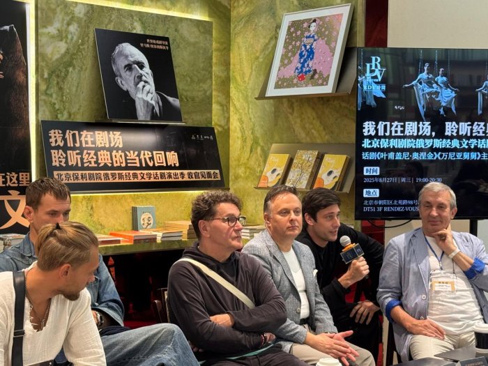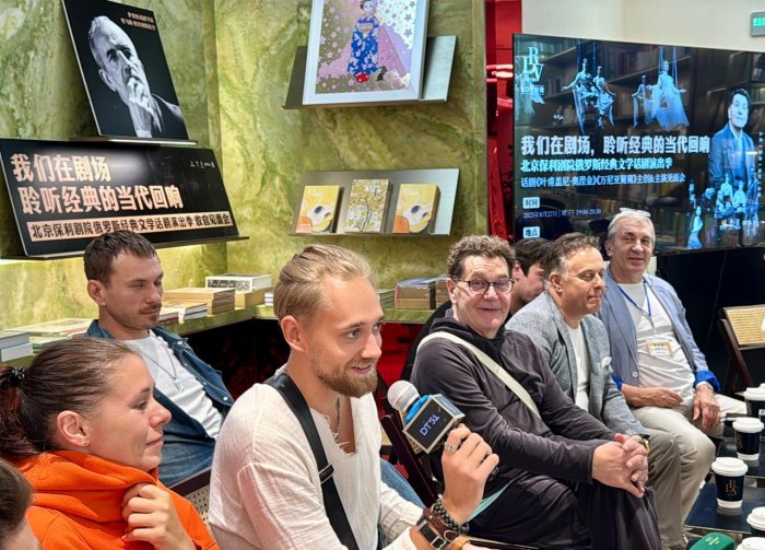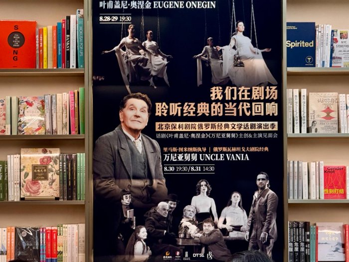 На этот раз общение было организована в книжном магазине с говорящим названием «Рандеву», где журналисты и фанаты в окружении книг приветствовали вахтанговцев. И это действительно была встреча друзей, потому что зрители, не скрывая эмоций, говорили о том, как они соскучились и как ждали этой встречи, а артисты признавались, что летели уже почти как к родным, которые принимают с потрясающим радушием. При этом разговор был довольно профессиональным, что еще раз подчеркивало – случайных людей в фан-клубе «Онегина» нет. Актеров театра спрашивали о причинах замен на ролях главных героев, о том, как сохраняется режиссерский стиль Туминаса, об актуальности романа Пушкина сегодня и о том, чем эгоизм Онегина перекликается с нынешними временами. Не обошли профессиональным вопросом и директора театра Кирилла Крока, спросив о том, успеют ли рабочие сцены заменить за ночь декорации «Евгения Онегина» на «Дядю Ваню», и нет ли в этом риска ставить один спектакль за другим. Крок, уже привыкший проводить здесь просветительские экскурсии для зрителей по закулисью, подробно разъяснял, чем российский репертуарный театр отличается от других театров мира, и рассказывал, что в Москве это обычная практика – каждый день играть другой спектакль, а в Театре Вахтангова еще и одновременно разные спектакли на шести сценах. Такой масштаб производил заметное впечатление на китайцев, которых масштабами, казалось, не удивишь.