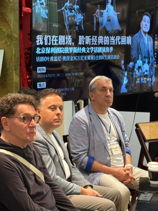 Особое внимание, впрочем, вполне ожидаемое, в этот вечер было уделено предстоящему показу спектакля «Дяди Вани», который вахтанговцы впервые привезли в Китай. Местные театралы творчество Чехова здесь хорошо знают по своим театрам, спектакли по его произведениям сюда не раз привозили и на гастроли, поэтому «Дядей Ваней» их удивить сложно. Но постановка Римаса Туминаса, который здесь признан культовым российским режиссёром мирового масштаба, вызывает необычайный интерес и ажиотаж. Поэтому Сергею Маковецкому, лучшему «дяде Ване» русского театра, пришлось дольше всех отвечать на вопросы зрителей, объясняя, почему Чехов так актуален в мире, и чем его герой в прочтении Туминаса так близок и понятен зрителю любой страны. Слушали Маковецкого затаив дыхание, и было понятно, почему его портрет украшает все вахтанговские афиши в городе – его здесь хорошо знают и любят по «Онегину». А теперь очень ждут и в «Дяде Ване».
