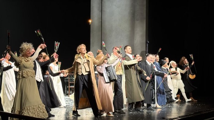 На этот раз, как и всегда, встрече с «Евгением Онегиным» тоже предшествовал вечер общения с фан-клубом спектакля. Вахтанговцы хорошо знают об этом необычном сообществе, которое сложилось в Китае после первого показа «Онегина» на фестивале 2018 года. Спектакль Туминаса буквально всколыхнул тогда театральный мир Китая, превратив гениальное творение Пушкина в одно из самых читаемых теперь здесь произведений русской классики. А вокруг спектакля и вахтанговцев объединилось неформальное сообщество китайских театралов, не пропускающих ни одной встречи не только в театральном зале, но и в любом другом формате.