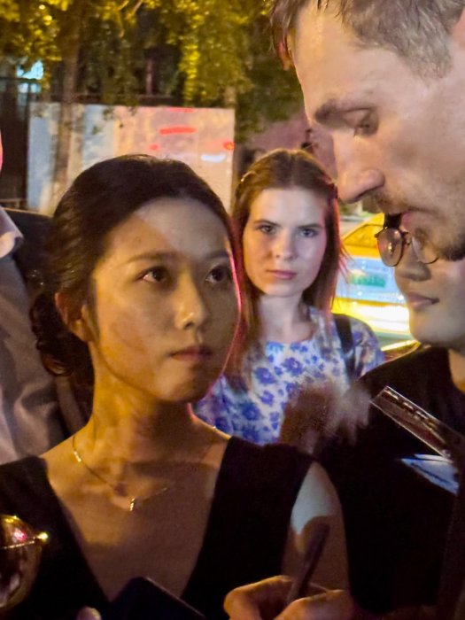 Впрочем, любят и знают здесь и многих других актеров, играющих в «Онегине». За автографами и сэлфи к Николаю Романовскому, Леониду Бичевину, Екатерине Крамзиной, Марии Бердинских… сразу же после официальной части общения выстроилась очередь. Здесь ко мне подошла вахтанговская поклонница Тиань, с которой мы познакомились после спектакля «Евгений Онегин» год назад. Аспирантка-филолог из Харбина, изучающая русскую литературу, тогда специально прилетала с подругами в Шанхай, чтобы посмотреть спектакль, и ходила на его показы трижды. Теперь они дружной компанией прилетели в Пекин, купив заранее билеты не только на «Онегина», но и на «Дядю Ваню». «Мы вас очень ждали, – говорит мне Тиань, невольно приобщая меня к вахтанговцам, хотя знает, что я журналист. Но я и не спорю, прильнув на мгновенье к чужой славе. – Вас даже небо сегодня ждало: весь день, как только вы прилетели, идет дождь. Это слезы радости. Мы вас очень ждали!», – повторяет она, улыбаясь, и торопится снять сэлфи с Романовским.