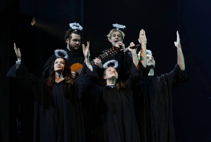 По традиции новый творческий год начался с яркого капустника. Его оформление и содержание отсылали к спектаклю, которым откроется сезон, – недавней премьере «Дон Жуан. Новый миф» Максима Меламедова. Труппа обыграла метафору «храм искусства», устроив шуточное покаяние в грехах перед своим падре – Сергеем Безруковым. На исповеди выступили и новые актеры театра: София Григорьева-Александрова, Екатерина Скрыпник, Арсений Муравьев, Тимофей Клявер и Елизавета Польшина.