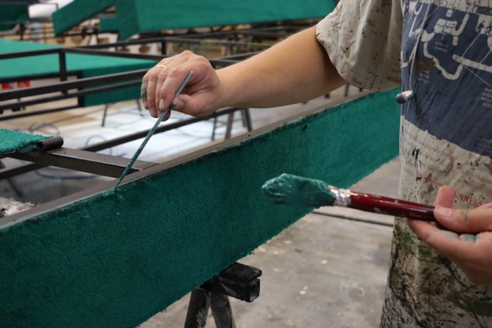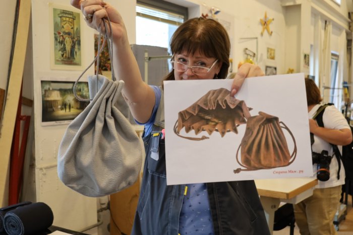 Экскурсию проводила заместитель заведующего производственными мастерскими Людмила Марьянова: «Мы используем современные материалы и технологии, но работаем по историческим документам. Всё – от декораций до костюмов – делаем сами. Только искусственные цветы покупаем – из них составляем букеты», – рассказала она.