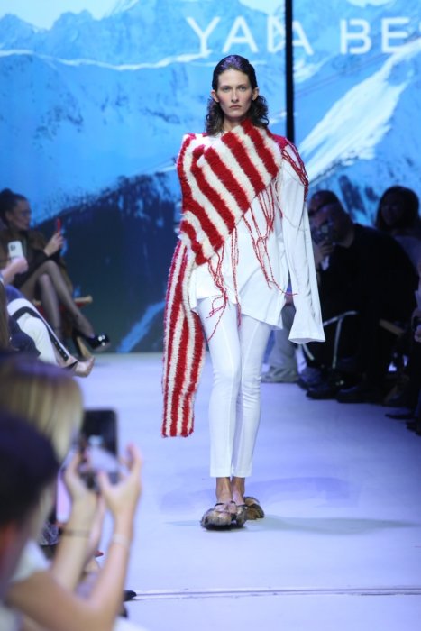 Одним из главных подиумных событий Недели моды стала презентация новой коллекции FW 25 / 26 “Apres Ski” от бренда Yana Besfamilnaya. Ещё до начала показа зрителей погрузили в атмосферу горнолыжного отдыха. В зимней коллекции: объемные вязаные джемпера, купальники и шарфы в пол, которые не без иронии сочетались в одной линейке со строгими жакетами.