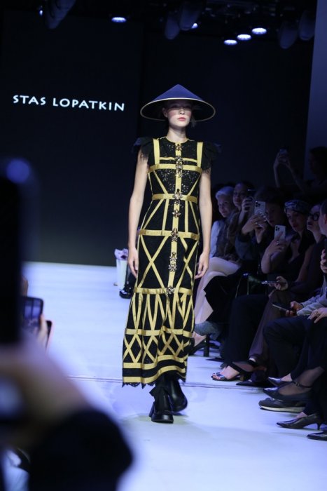 На подиуме были представлены коллекции от STAS LOPATKIN (Санкт-Петербург). Новую коллекцию дизайнера La Laque Noire называют философским высказыванием. Основной сюжет коллекции – шинуазри (европейский стиль, имитирующий китайское искусство), с его экзотическими узорами и причудливыми формами. Глубокие чёрные лаковые тона и золотая вышивка напоминают восточные антикварные шкатулки. Объемные модели коллекции сочетаются с изящными французскими силуэтами. Концепция новой коллекции – изысканная игра культурных кодов Востока и Запада.