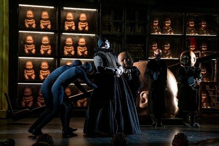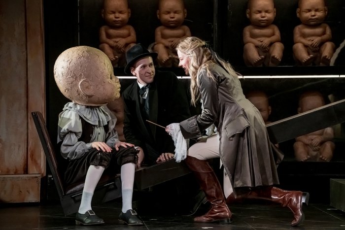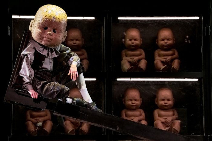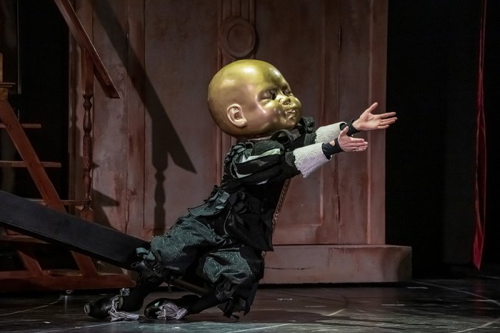 Мольер и Людовик XIV появляются на сцене как дети – два мальчика с огромными головами младенцев: деревянной – у одного, золотой – у другого. Они постоянно играют, потому что «детская игра – самая искренняя и интересная», говорит Квятковский. «На самом деле, она – зерно человеческих отношений. Даже имея должности, статусы, люди всё равно продолжают играть. Игровой интерес к другу может дорастать до конфронтации влияний, интересов. Иногда это приводит к трагическим последствиям. При определённом стечении обстоятельств даже любовь превращается в кабалу. И это еще одна тема спектакля – анализ разных форм кабалы, зависимости, нашей несвободы. У каждого героя она – своя», – добавляет режиссер.