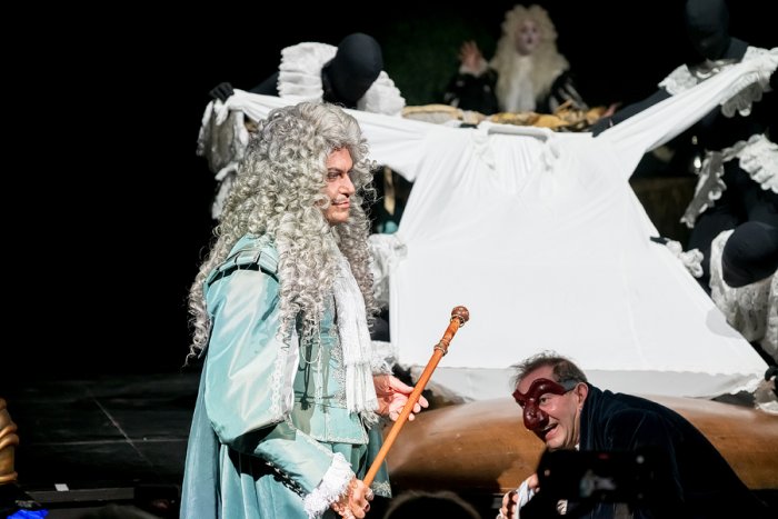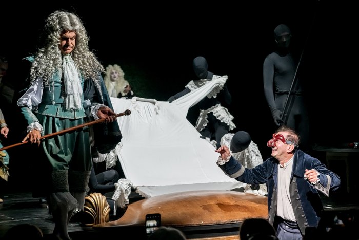 В МХТ имени Чехова вышла премьера с Константином Хабенским в роли Мольера и Николаем Цискаридзе – экс-премьер Большого театра дебютировал на драматической сцене в образе короля Людовика XIV, который придумал профессию балетного артиста.