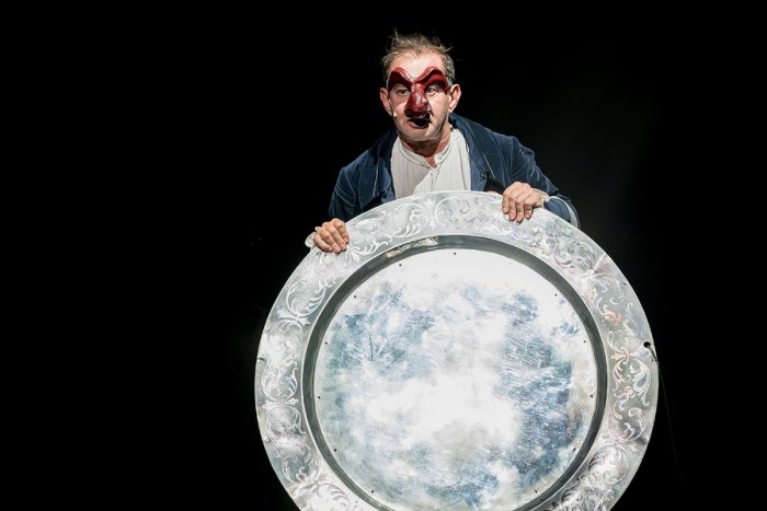 «Делать спектакль в МХТ и не взаимодействовать с Булгаковым просто невозможно», – считает режиссер Юрий Квятковский. Поэтому в инсценировку вошли документы советской эпохи, а на сцене появилось лицо от автора, которого в мольеровской труппе зовут не Михаил Афанасьевич, а Регистр. «Временной фрактал» соединил 18 век во Франции с булгаковскими 1930-ми и современностью.