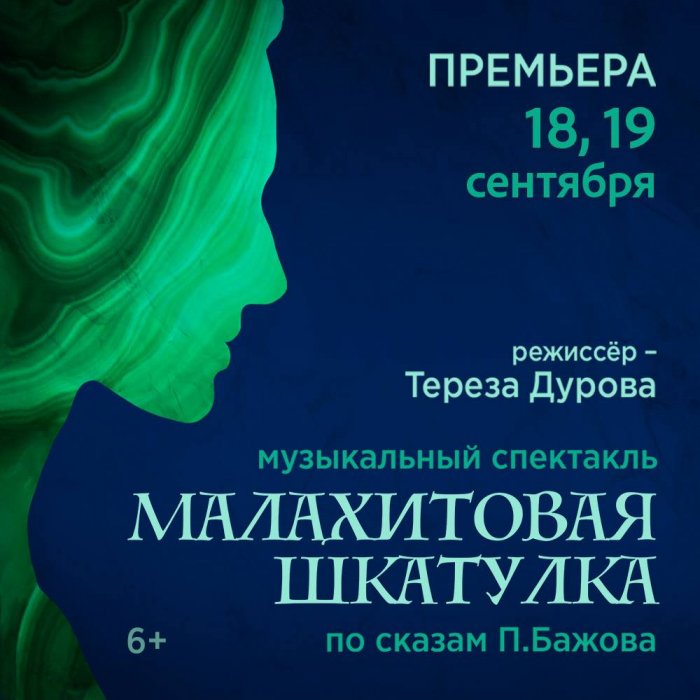 18 сентября «Театр Терезы Дуровой» представит премьеру музыкального спектакля «Малахитовая шкатулка», который даст старт 33-му театральному сезону. Постановка режиссера Терезы Дуровой по мотивам сказов Павла Бажова перенесет зрителей на Урал и познакомит с его колоритными персонажами и таинственными силами.