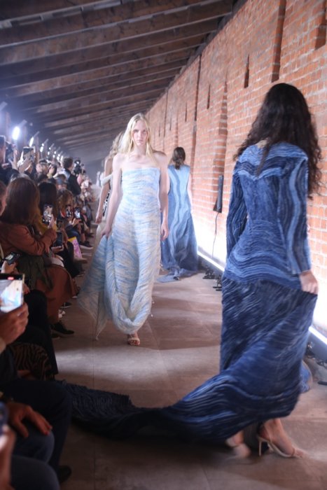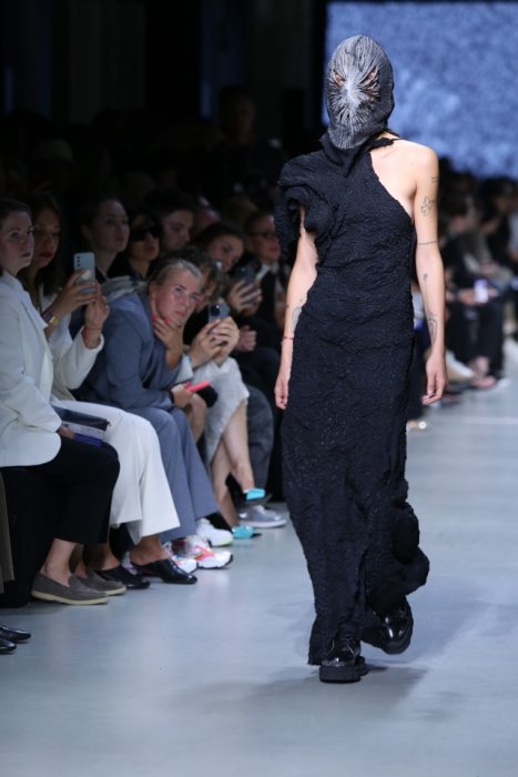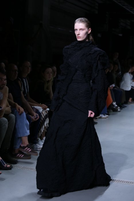Дизайн образов построен на готических мотивах и авангардных формах. Ткани дополнены ручной росписью, графическими принтами и вышивкой. В коллекцию вошли плащи и жакеты свободного кроя, костюмы с фактурной поверхностью и модели с масками. Многие отметили, сходство новой коллекции российского бренда с последним показом Maison Margiela на Неделе моды в Париже 2025. Покрытые лица, сделавшие дебютную работу Гленна Мартенса вирусной, наверняка были основными в мудборде дизайнеров и стайлинг-команды Pirosmani Studio. О себе создатели бренда пишут, что в основе философии марки – создание одежды для творческих людей, одежды, которая бы была подобна арт-объекту. «Как Петербург – вне времени, моды и других буржуазных законов мироздания», – пишет о PIROSMANI команда бренда. Яркой финальной точкой недели моды стал показ Алёны Ахмадуллиной «Мета-сказка». Он был разделён на блоки, отразившие путь бренда за двадцать пять лет. За это время марку стали называть апологетом русского стиля на международной модной арене.