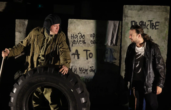 Важным элементом, поддерживающим это ощущение вечного движения, становится игра в стихии: на сцене оживает огонь, а ветер вообще становится одним из главных героев спектакля. Ведь именно он и покалечил Урода в детстве, и именно он натолкнул Володю на открытие нового чувства, искреннего переживания своего места в судьбе окружающих людей и своего отца.