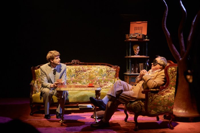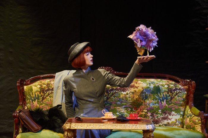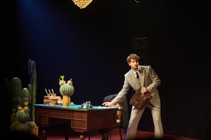 Хрустальные люстры. Красный ковёр. Сухое дерево нависает над винтажным креслом. Кактусы в горшках – частичка африканской плантации в утончённом европейском особняке. С самого начала сценография спектакля поражает своей изысканной скрупулезностью.