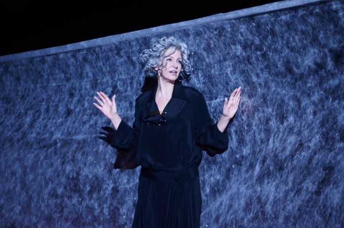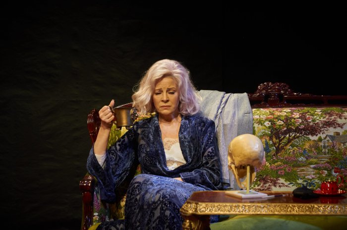 Пространство сцены дышит любовью к деталям: патефон, утопающие в песке медные джезвы, блюдо с баранчиком, ведёрко с шампанским… Десятки предметов реквизита очерчивают жилище Симоны Нильсен.