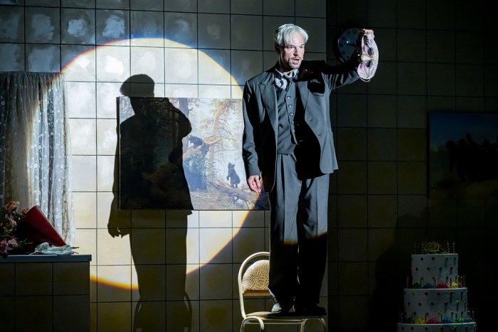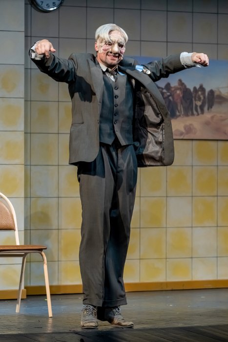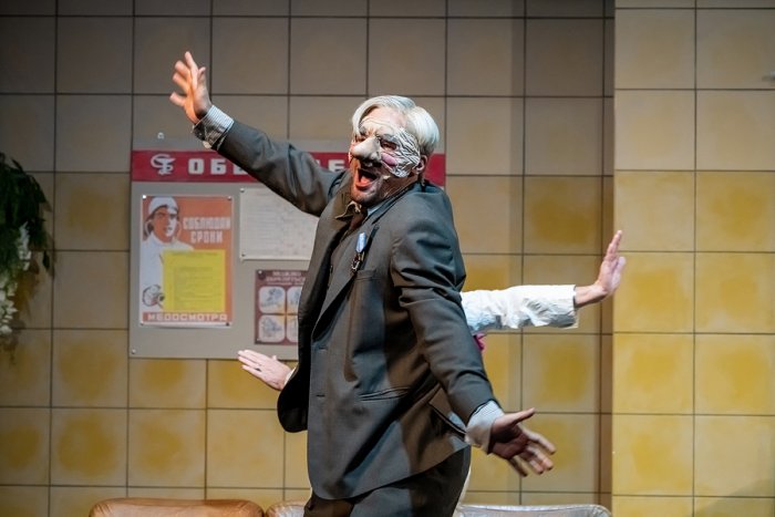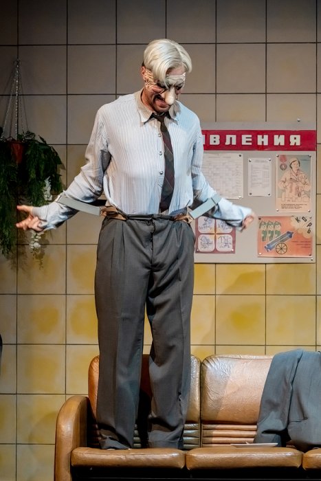 И мы через спектакль решили исследовать эту обидную для писателей, актеров, певцов – вообще для людей творческих профессий – ситуацию, когда «приклеивается» одно произведение, которое однажды произвело фурор, или одна роль, одна песня – и больше ничего от человека не надо. Он продолжает работать, делает что-то новое, а все просят спеть тот самый хит или, увидев его на улице, начинают тыкать пальцем и называть именем того героя, благодаря которому он стал известен широкой аудитории.Поэтому ход с маской, которую Чуковский может надеть, когда надо, и может снять, когда остаётся один, – попытка исследовать судьбу одарённого человека, у которого помимо всем известной работы, в активе есть много чего еще. Но только интересно и нужно это далеко не всем.